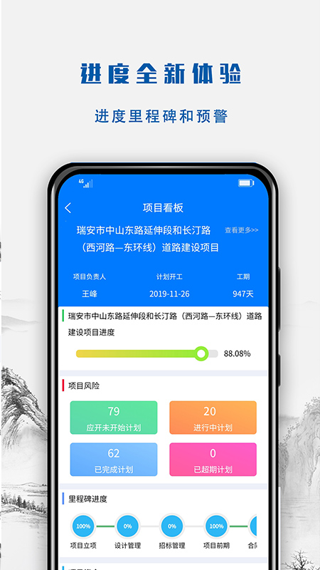 建文工程項目管理APP,抓細節(jié)、控進度、降成本、增效益! 助力項目成本“算的準、控的住、管的細”; 助力工程進度“大項控得住,小項精細化”。 極簡設計,一屏統(tǒng)攬、一鍵追蹤,一鍵直達,開啟數(shù)字化項目協(xié)同辦公新模式?。?