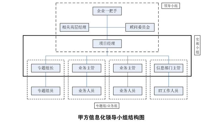 数字化、信息化目正式启动后的l织方式需Ҏ(gu)企业的规模和目的性质军_。项目型l织通常?个层ơ:(x)领导组、实施小l和各个职能业务组。一般来说这是对于大型项目而言Q小型项目可以由实施组D业务l的工作。但上两个层ơ是必不可少的?/p>