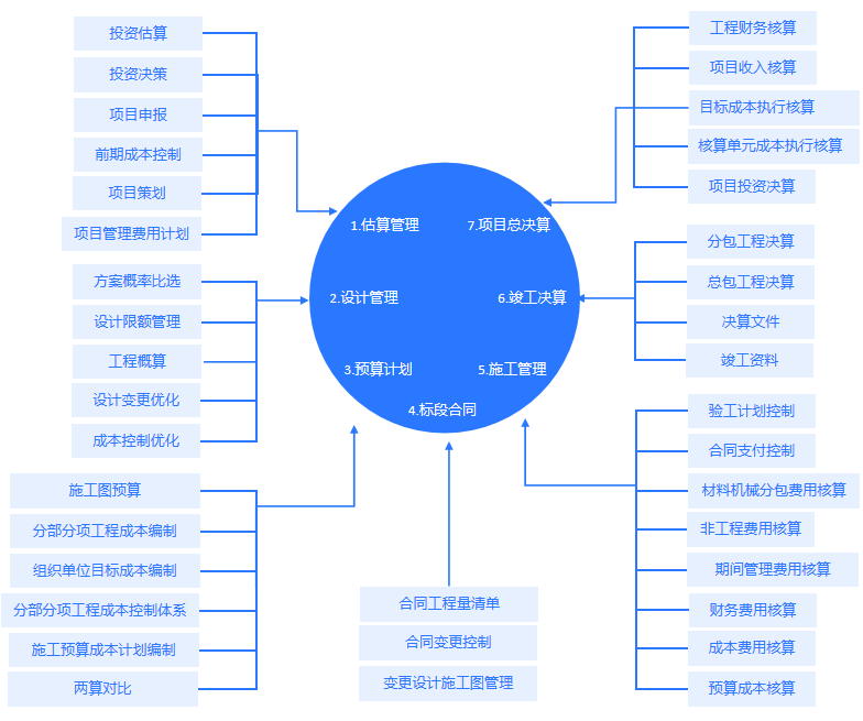 從項目中標到工程交付業(yè)主的全過程費控(成本)管理,工程總承包合同價款明細,與項目管理、設(shè)計、施工到竣工投產(chǎn)整個過程發(fā)生的建安、設(shè)備、材料等所有費用的對比監(jiān)控,現(xiàn)金流、及產(chǎn)值與成本比值等監(jiān)控。注意把握邊界和顆粒度,與項目的工程造價體系(工程估算、概算、預(yù)算、變更、結(jié)算)進行區(qū)別;如果客戶需要,專業(yè)模塊可請第三方造價團隊共同完成,并提供行業(yè)數(shù)據(jù)庫對接和針對項目的工程造價咨詢服務(wù)。