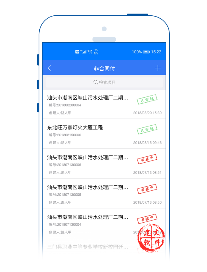 建文流程申請APP,是一款綜合流程服務(wù)App,即可以由企業(yè)內(nèi)部獨(dú)立使用,也可以向協(xié)作單位同時(shí)開放:施工方、監(jiān)理方、設(shè)計(jì)方,項(xiàng)目管理方、業(yè)主方等;可實(shí)現(xiàn)項(xiàng)目管理+互聯(lián)網(wǎng)的深度融合,全力助推工程項(xiàng)目多方協(xié)作平臺(tái)的智慧提升。