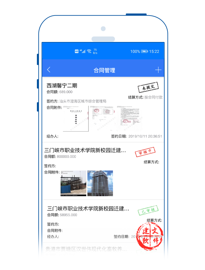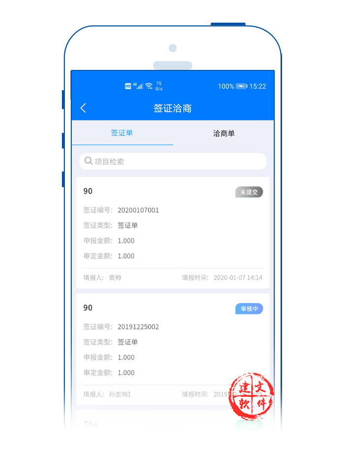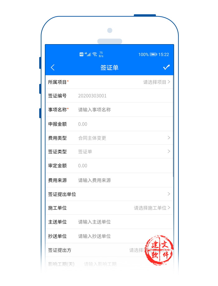 建文app簽證APP,支持多個(gè)設(shè)計(jì)變更單對應(yīng)一個(gè)簽證單;支持費(fèi)用簽證、工期簽證或者費(fèi)用+工期簽證等多種形式。