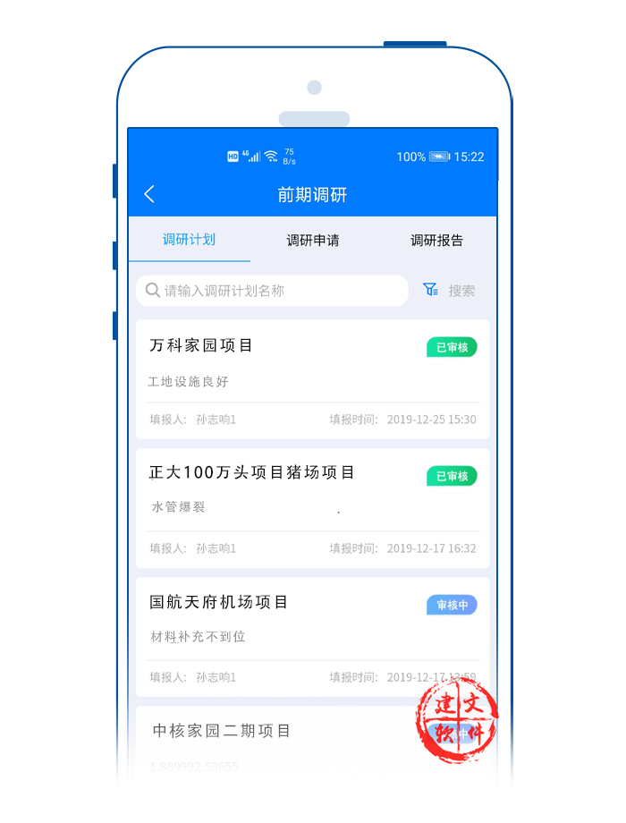 1) 支持手機(jī)APP上報(bào)調(diào)研計(jì)劃、調(diào)研申請、調(diào)研報(bào)告;