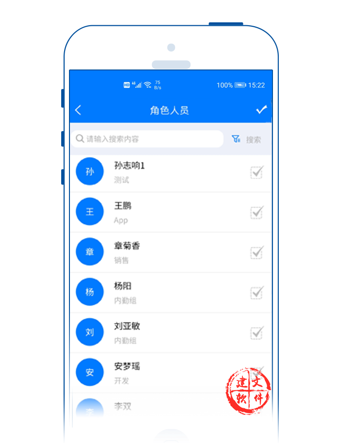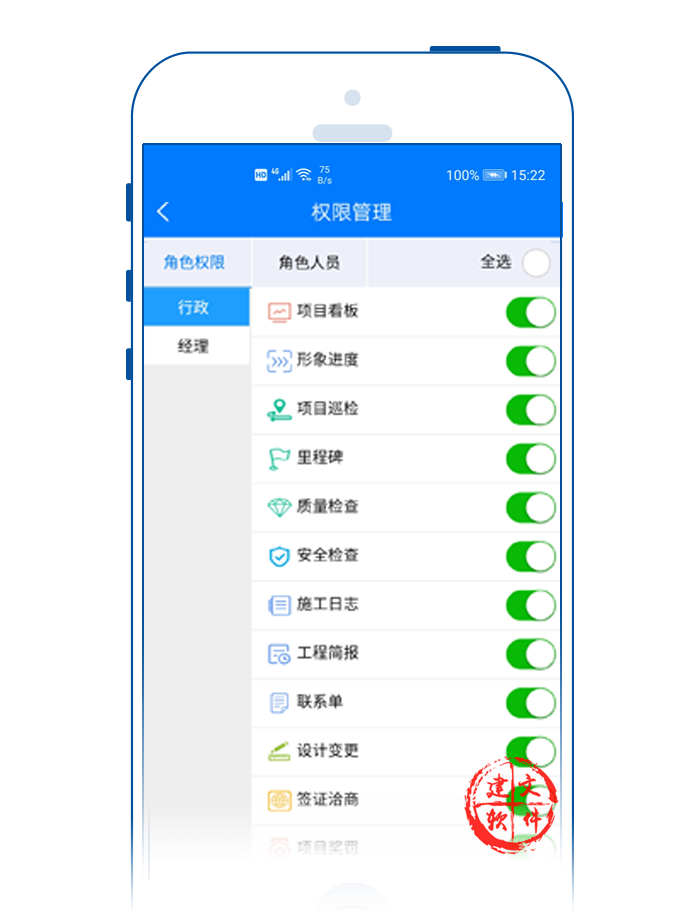 建文APP,支持手機(jī)APP對用戶、角色、權(quán)限三者結(jié)合的方式進(jìn)行權(quán)限設(shè)置: