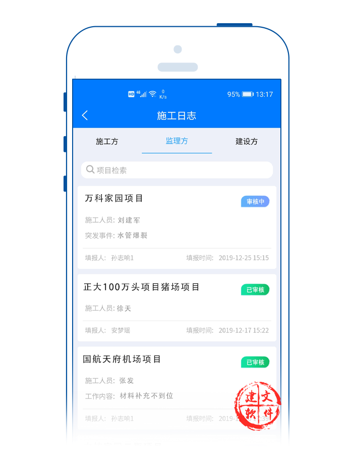 建文智慧工地app旨在為項(xiàng)目現(xiàn)場打造以“工程”和“人”為核心,以進(jìn)度為主線、以合同為約束、以施工現(xiàn)場統(tǒng)籌為目標(biāo)的多方移動(dòng)協(xié)作平臺(tái)。