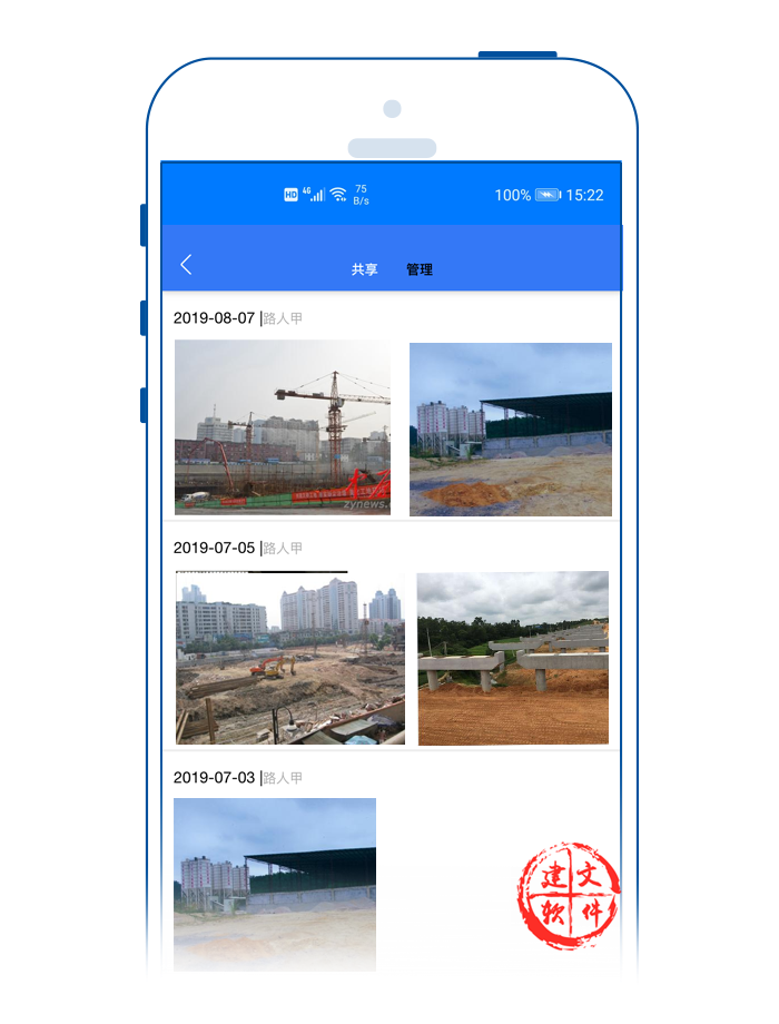 3)隨手拍:內(nèi)置項(xiàng)目隨手拍,由此入口拍攝的圖片、視頻全公司自動(dòng)共享,可多人協(xié)作同一個(gè)文件、一個(gè)圖片或者視頻,報(bào)進(jìn)度、寫日志、填周報(bào),直接選取工地現(xiàn)場圖片,實(shí)現(xiàn)高效辦公,共享文件不止方便一點(diǎn)點(diǎn);