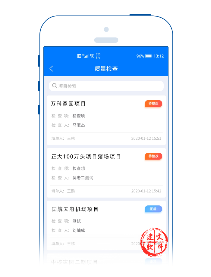 建文質(zhì)量檢查APP,包括了開工期的質(zhì)量檢查、施工中質(zhì)量檢查、定期檢查、工序檢查四大項(xiàng),以及“三檢管理”(自檢、互檢、專檢)體系。