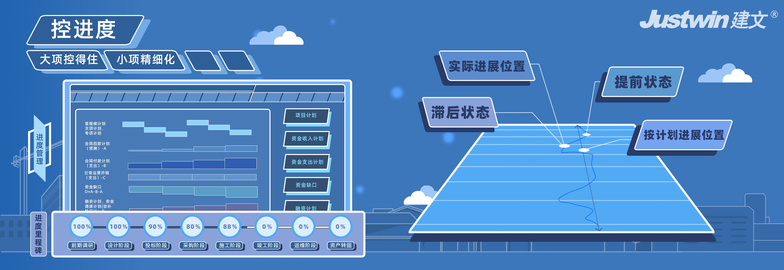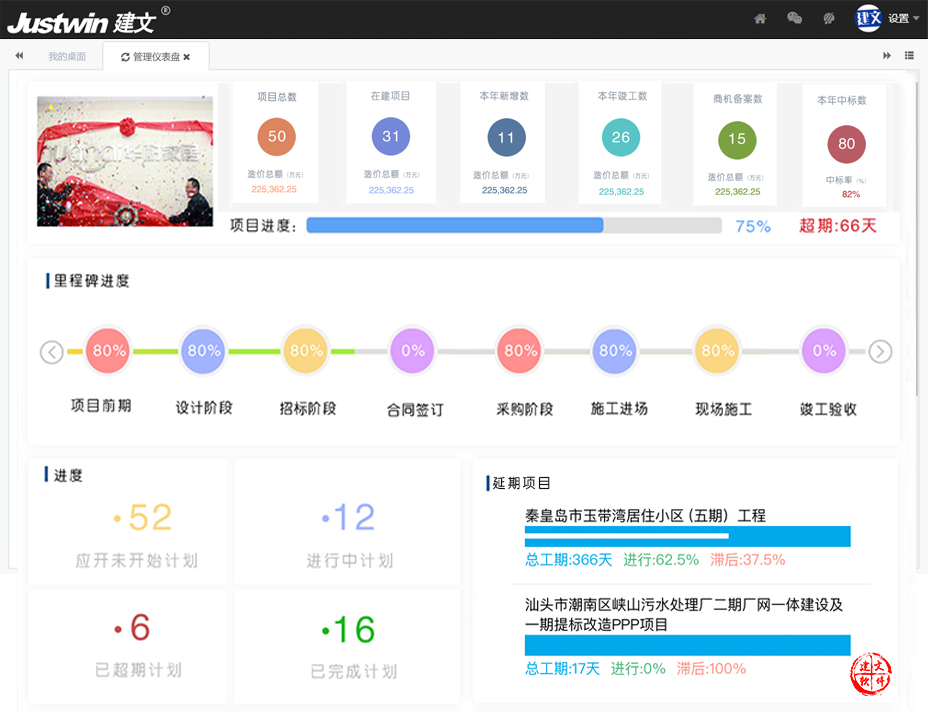 進度管理的關鍵在于“抓細節(jié)”,建文進度管理系統(tǒng)”控的住、管的細”,實現(xiàn)大項控得住,小項精細化!