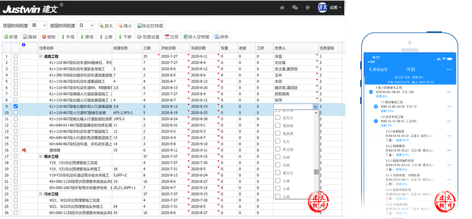 本系統(tǒng)支持PC端Web編制和移動端APP編制,提供了WBS、OBS編碼體系,里程碑、限制時間、WBS對應的責任人的定義。幫助用戶建立起對項目總進度目標、控制點目標、項目的建設內(nèi)容與范圍、項目工作界面以及變更等方面的管理與控制體系。