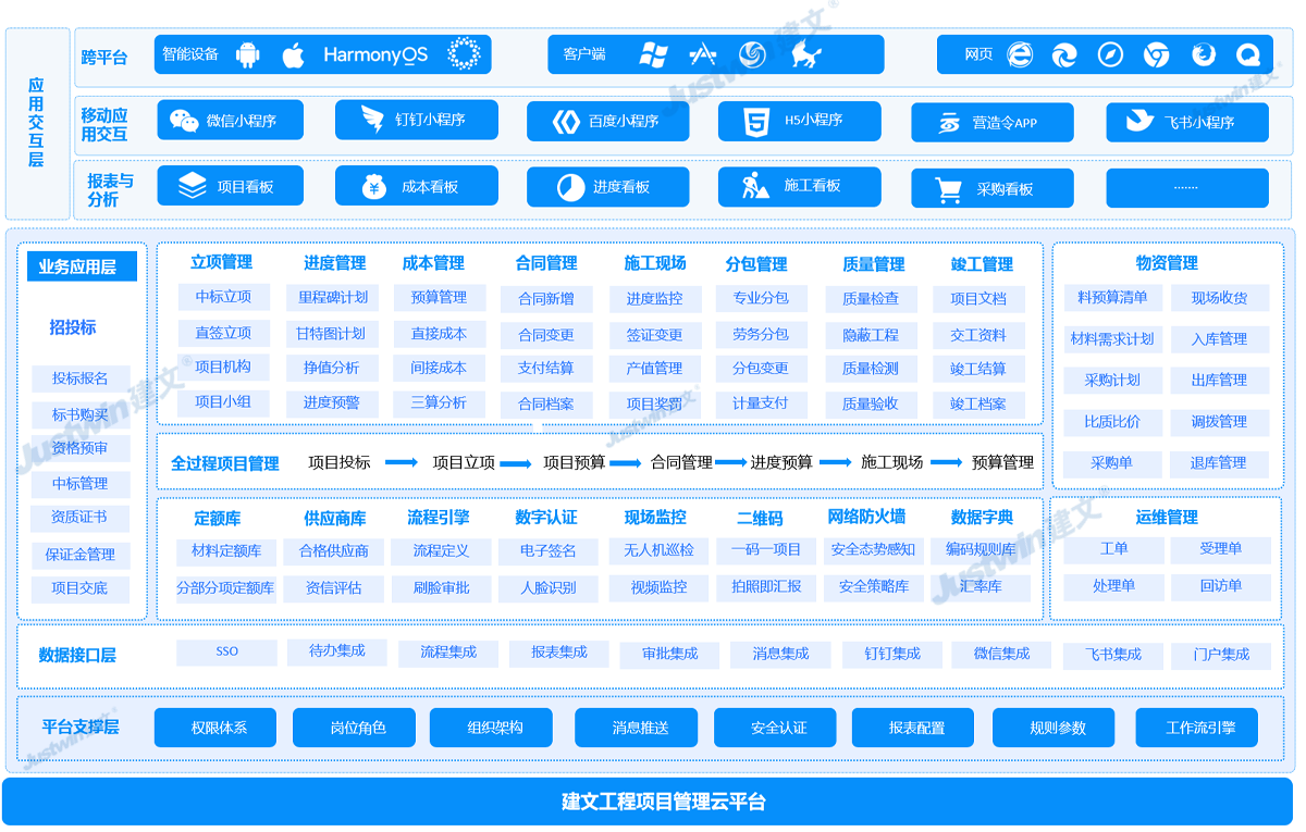 建文云 · 上云用數(shù)賦智?!吧显啤敝攸c是云上管項目,在線管工程;“用數(shù)”重點是用數(shù)據(jù)說話,心中有數(shù),融以致用;“賦智”重點是用數(shù)據(jù)決策,為項目賦能,智建未來。建文“上云用數(shù)賦智”行動,將有助于解決工程企業(yè)數(shù)字化轉(zhuǎn)型中“不會轉(zhuǎn)”、“沒錢轉(zhuǎn)”、“不敢轉(zhuǎn)”等問題,全面降低轉(zhuǎn)型門檻。